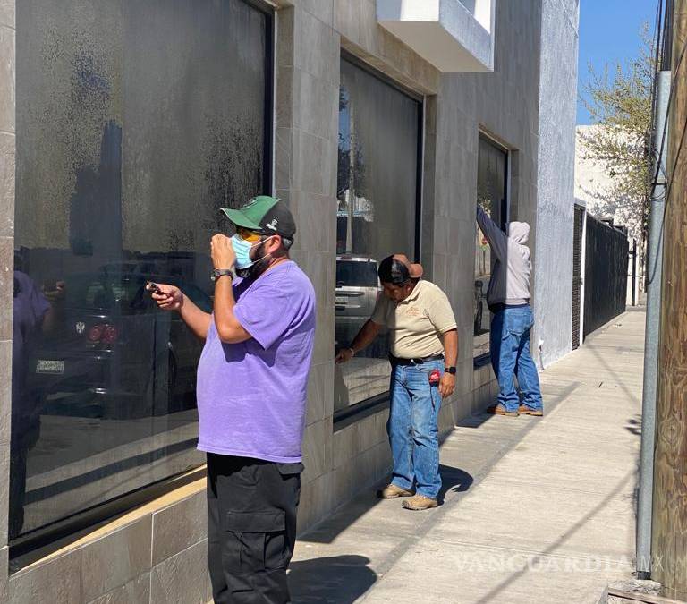 En la antigua sede, trabajadores aún realizaban ese día labores de raspado de las calcomanías que se ubicaban en los ventanales y que aludían a la SC.