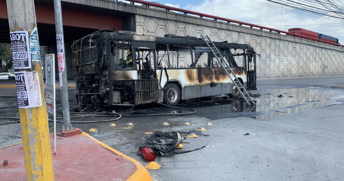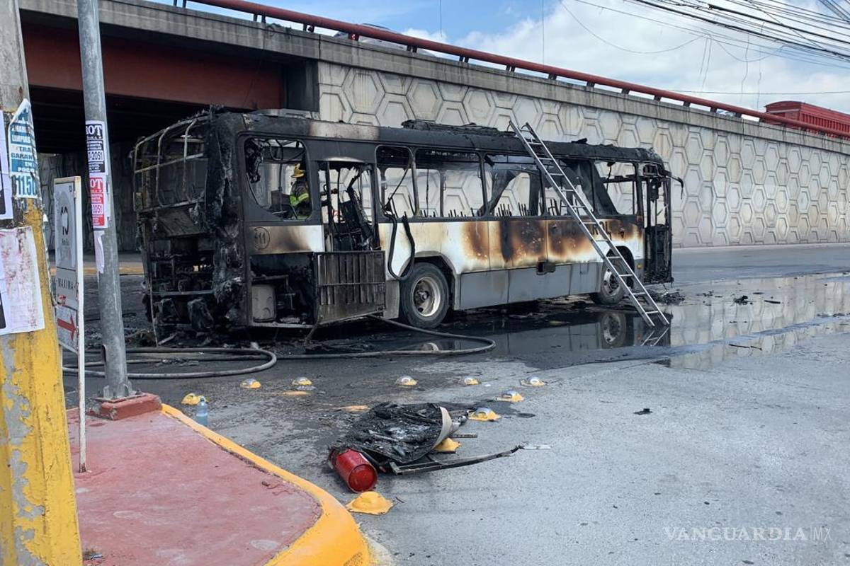 Camión con 20 pasajeros a bordo se incendia en Apodaca, Nuevo León; no reportan heridos