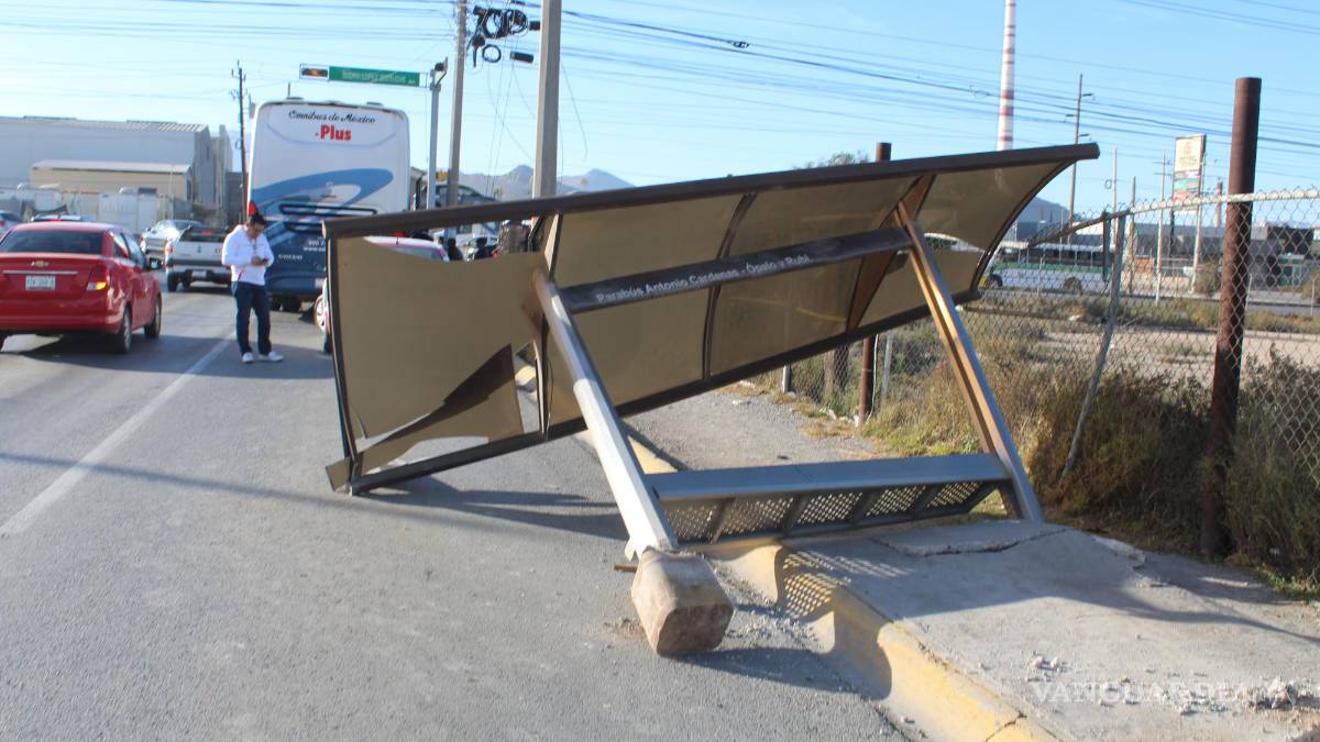Camión se impacta contra parabús y lo derriba, en Saltillo