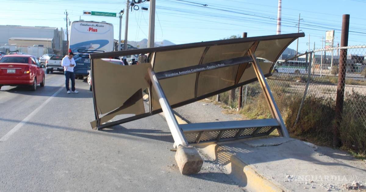 Una parada del transporte urbano, ubicada en el cruce de los bulevares Isidro López Zertuche y Luis Donaldo Colosio, fue derribada por un camión de la línea Ómnibus de México (OdeM).
