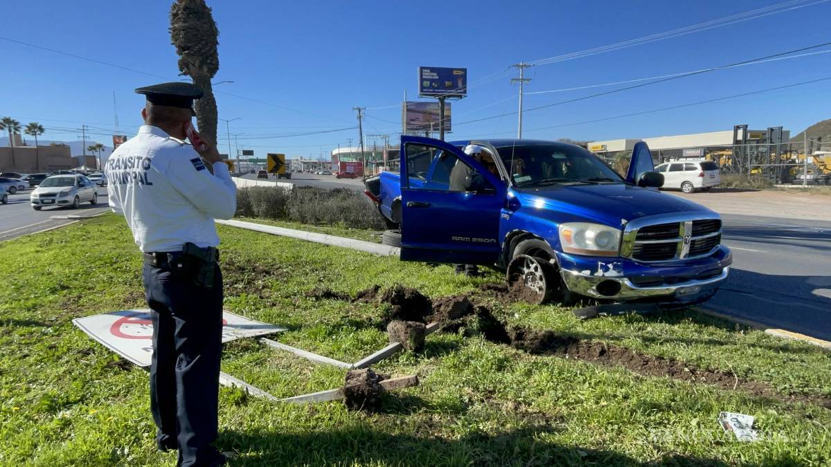 Esto ocasionó que la camioneta se descontrolara, saliera hacia su costado izquierdo y subiera la banqueta donde están las letras de la ciudad, luego diera la vuelta hasta terminar golpeando con la caja la luminaria, la cual derribó.