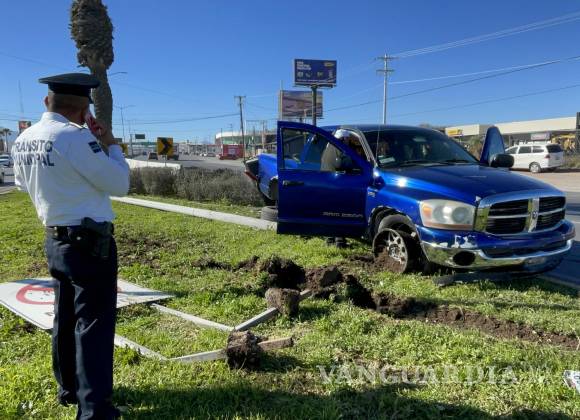 El tratar de esquivar un impacto contra el auto que tenía enfrente y contra otro que circulaba a su costado, orilló a un conductor de una camioneta a pisar el freno a fondo, lo que provocó que su vehículo se descontrolara y chocara contra una luminaria en la carretera Saltillo- Monterrey.