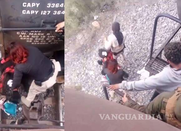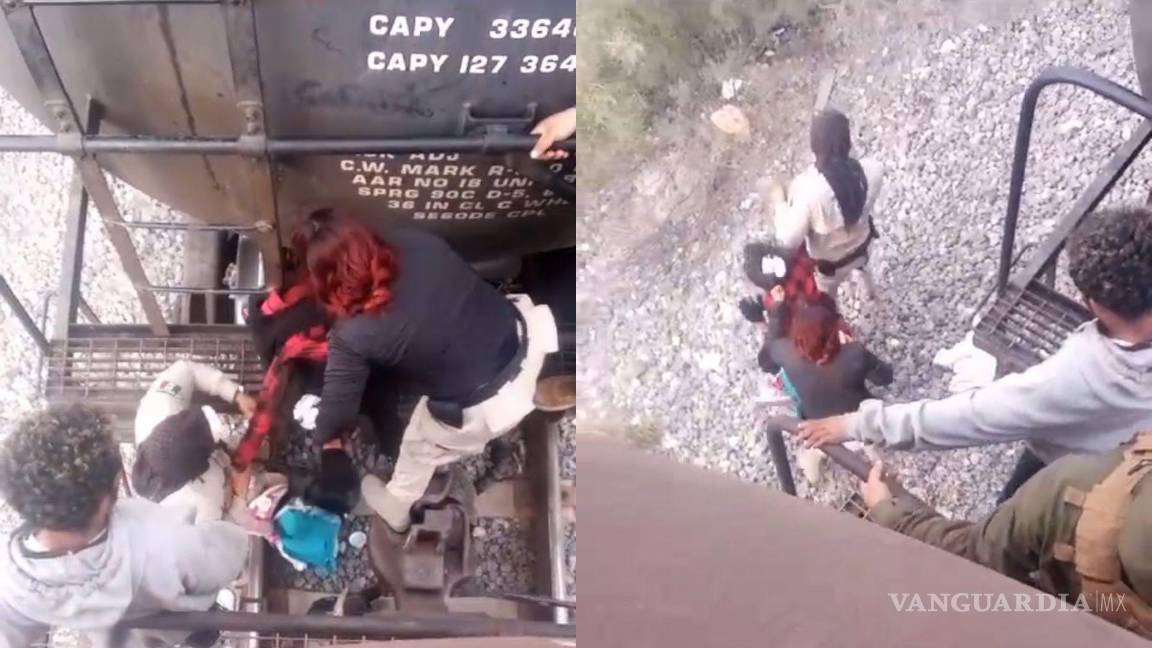 En las imágenes, se observa a la funcionaria del INM y a otro agente jaloneando a una persona que se encuentra en la parte superior de un vagón de ferrocarril.