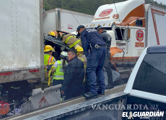 Elementos del cuerpo de bomberos de Arteaga y personal de Caminos y Puentes Federales acudieron al lugar del accidente, y utilizando herramientas hidráulicas lograron liberar a la mujer atrapada.