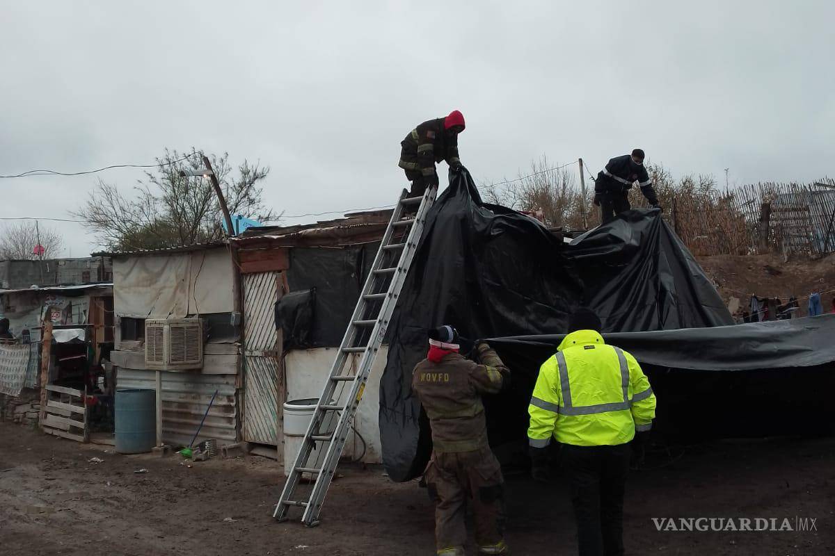 Por ahora, la única ayuda que han recibido es de los bomberos, que desde hace días se dieron a la tarea de llevar lonas, hules, para cubrir los tejabanes, además de ropa invernal y cobertores