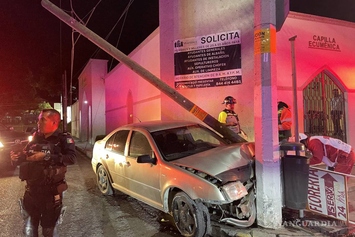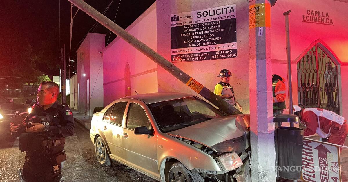 Durante la madrugada del sábado, se produjo un fuerte accidente al norte de Saltillo, cuando el conductor de un Volkswagen Jetta chocó contra un poste, derribándolo.
