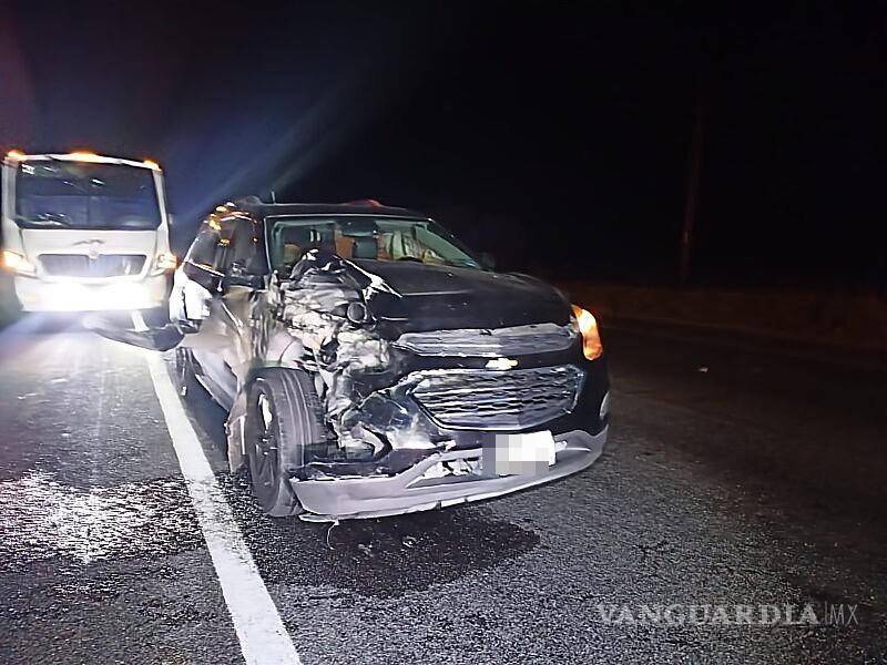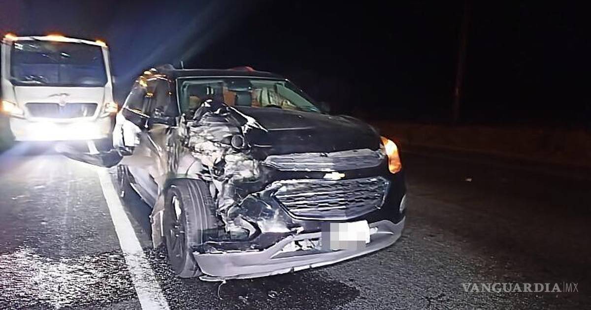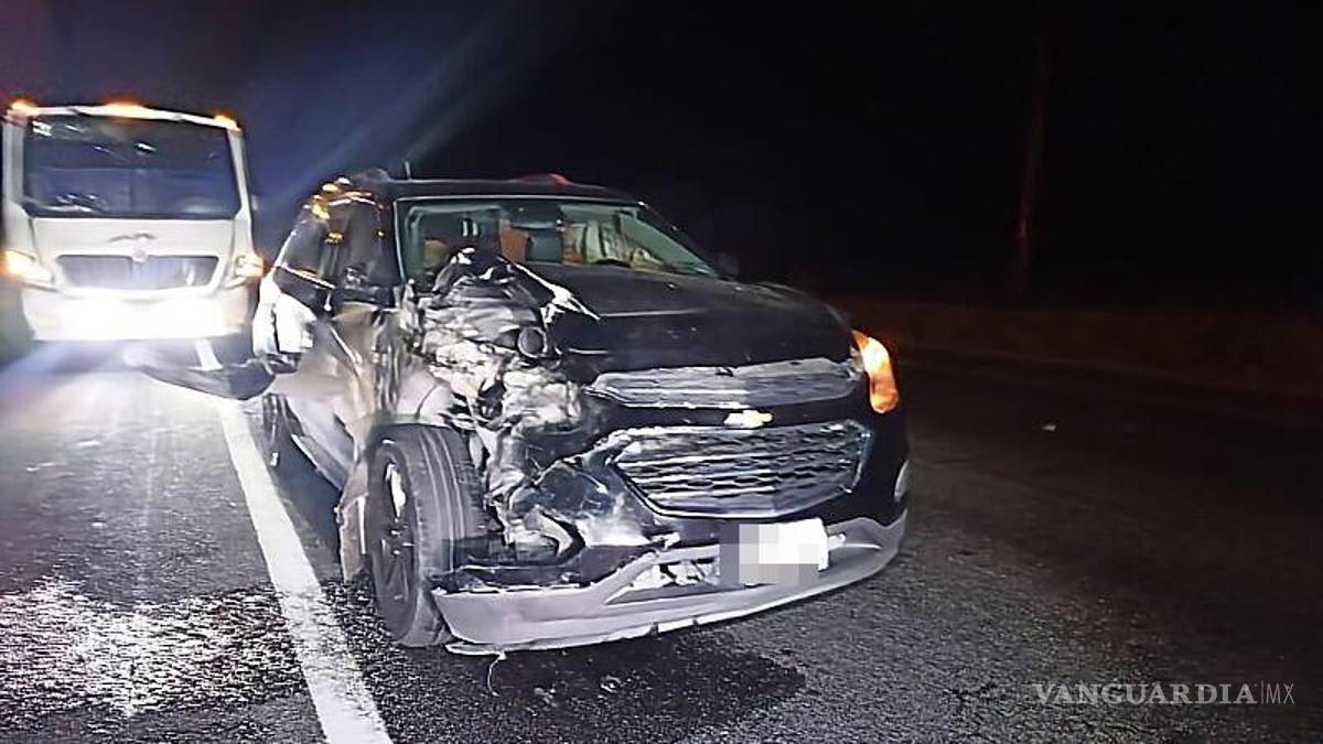 Una pareja originaria de San Antonio, Texas, sufrió un accidente en la madrugada de este miércoles al chocar contra una vaca en la carretera Saltillo-Monclova, a la altura del kilómetro 64, cerca del ejido Fraustro. El incidente ocurrió mientras se dirigían a Saltillo para visitar a un familiar hospitalizado en estado grave en la clínica 2 del IMSS.