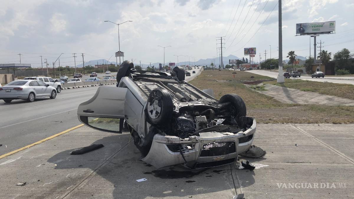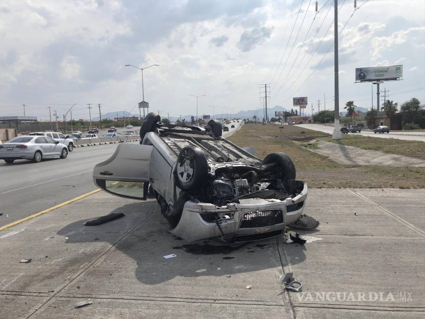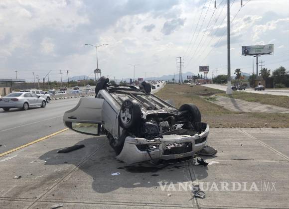 Choca, vuelca y causa otra volcadura, en Saltillo