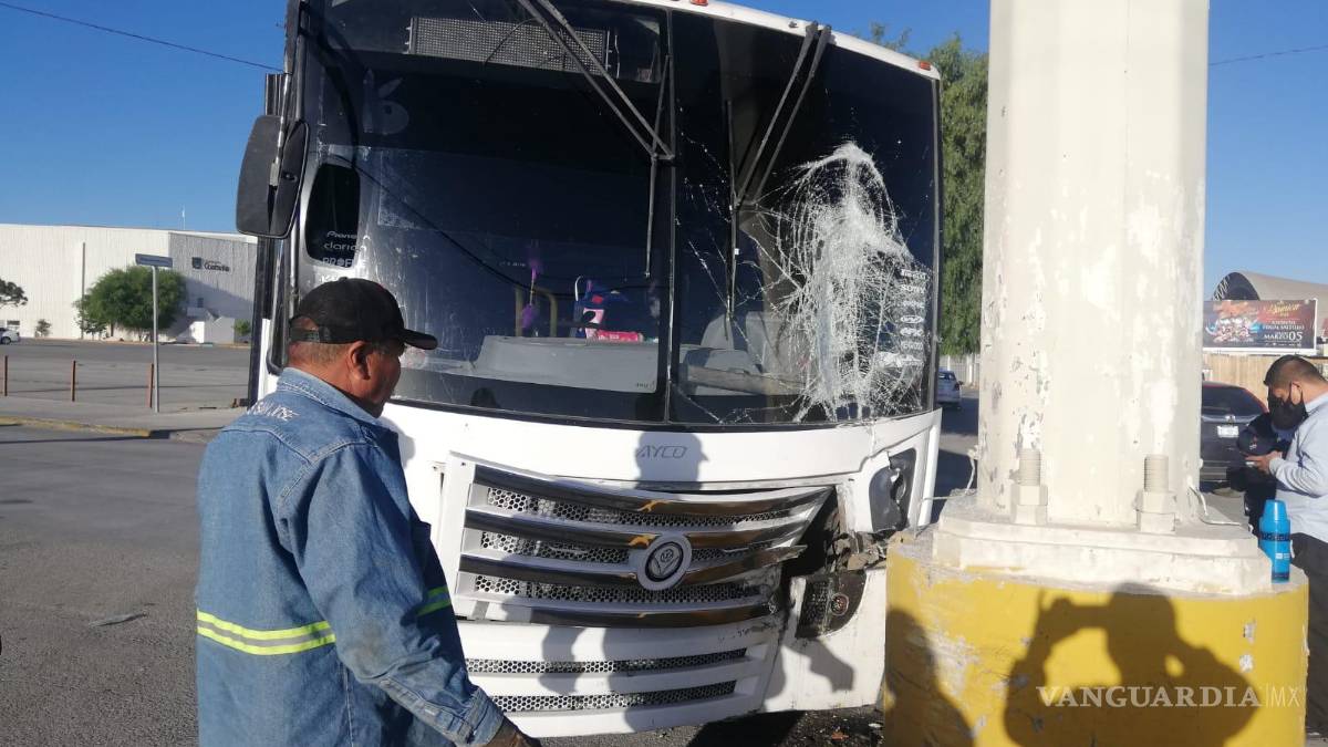 Para incorporarse al bulevar Centenario de Torreón, el tripulante no midió la dimensión y fue a pegar directo a poste eléctrico localizado en medio de los carriles centrales.