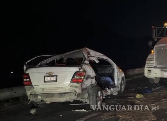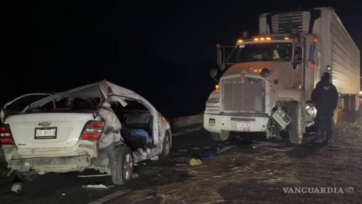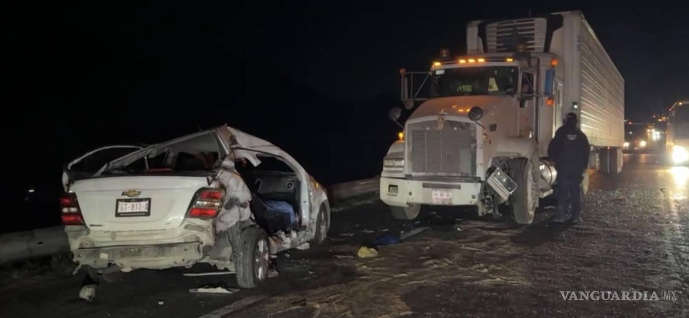 Chocan de frente contra tráiler en la carretera a Torreón; un muerto y tres lesionados de gravedad, entre ellos un menor, el saldo