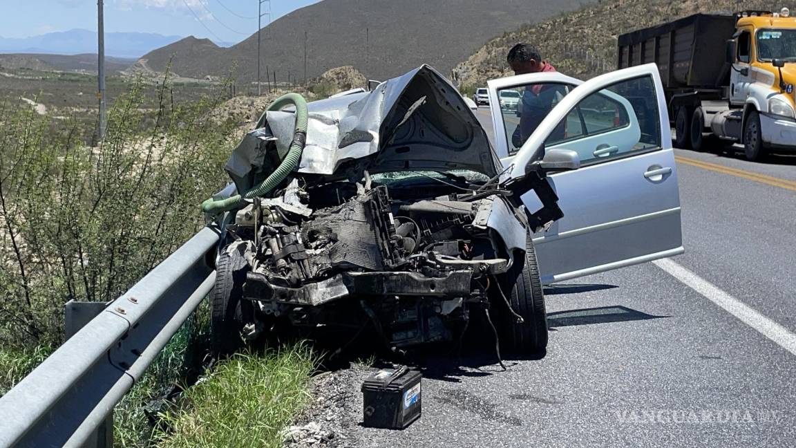 Una joven colisionó por alcance contra la parte trasera de una camioneta cisterna perteneciente a una empresa de limpieza de baños, en el kilómetro 12 de la carretera a Monclova en dirección a Saltillo.