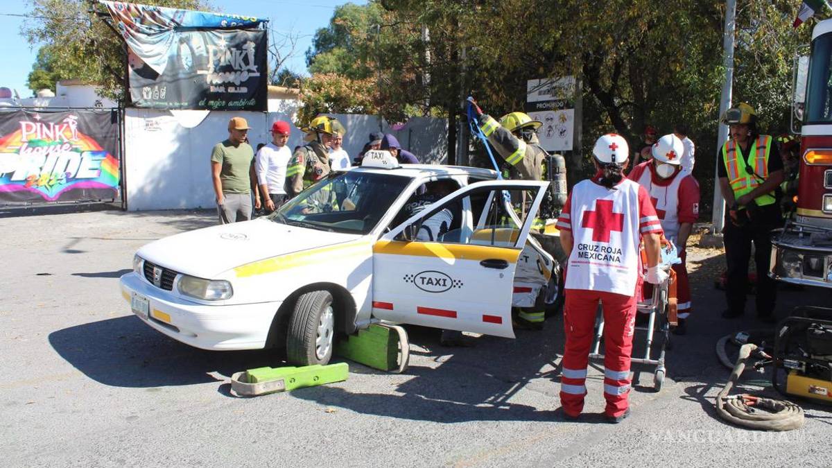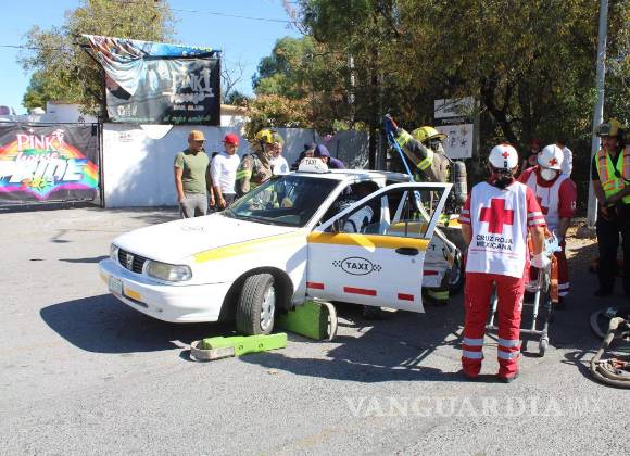 Dos adultas mayores terminaron atrapadas al interior de un taxi, tras participar en un choque con incendio que ocurrió en el cruce de avenida universidad y candela, en colonia república, de Saltillo.