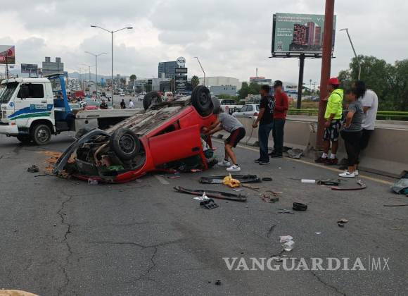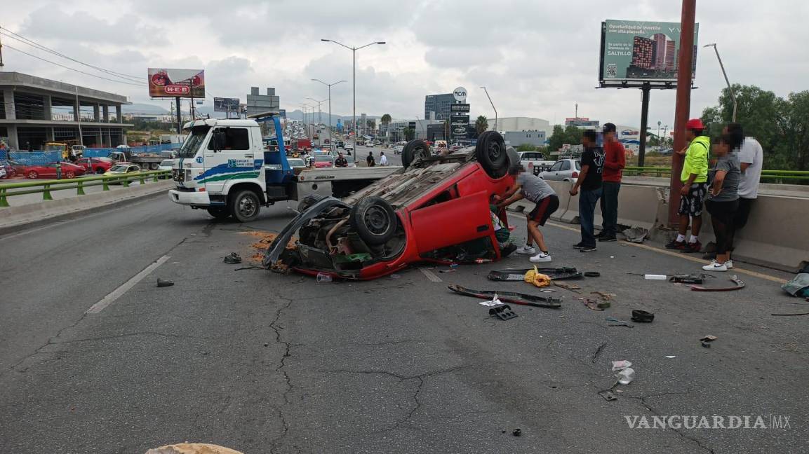 Choque y volcadura en bulevar Nazario Ortiz causa caos en Saltillo; copiloto resulta lesionada