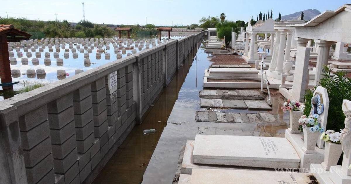 Explicó que los abundantes escurrimientos de agua de lluvia provenientes de la serranía cercana y de los cerros del poniente de Torreón provocaron la inundación de una gran parte del panteón, además del agua derivada de la laguna de regulación que colapsó.