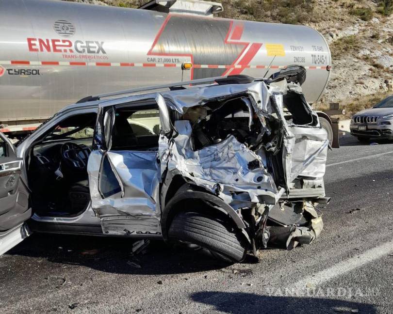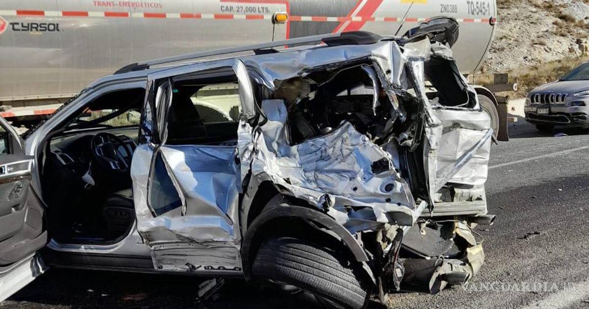 Saltillo.- Cinco personas sin vida y 16 lesionados, es el saldo de un accidente ocurrido este domingo en la carretera 57, México-Piedras Negras, en el tramo Matehuala-Saltillo.