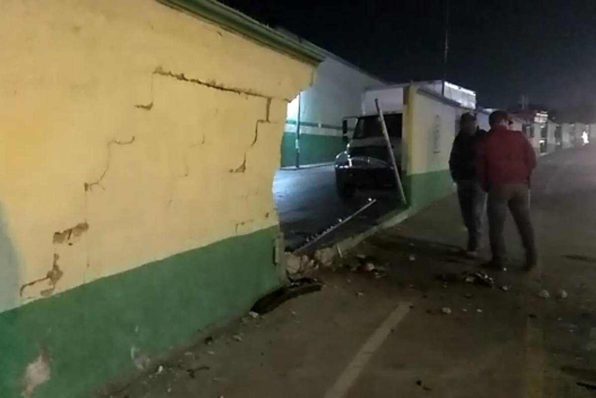 Posteriormente, el vehículo subió por la banqueta y se estrelló contra la barrera perimetral, lo que ocasionó que parte de esta se cayera hacia adentro de las instalaciones.