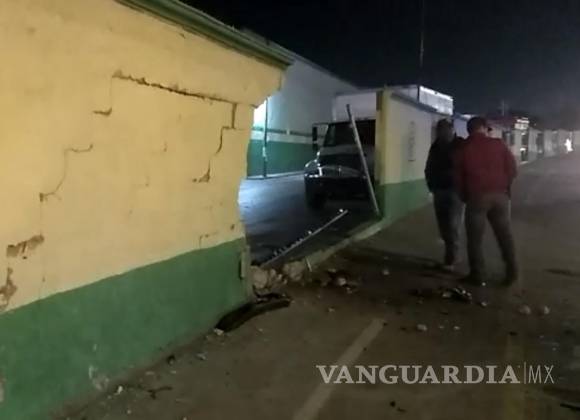 Circula a exceso de velocidad, pierde el control y tira barda del Mercado de Abastos de Saltillo
