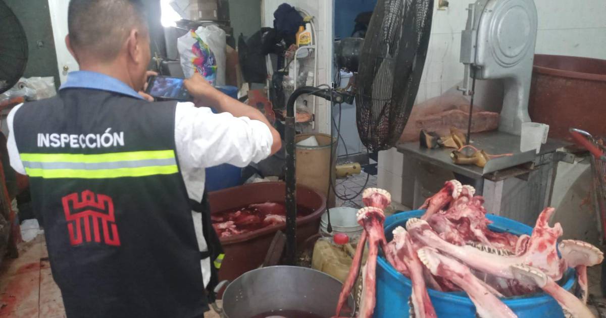 Además de confirmar la falta de licencia de funcionamiento, certificado de fumigación y tarjetas de salud, se constató que en el suelo, las paredes y el equipo utilizado para almacenar la carne prevalecía la suciedad.