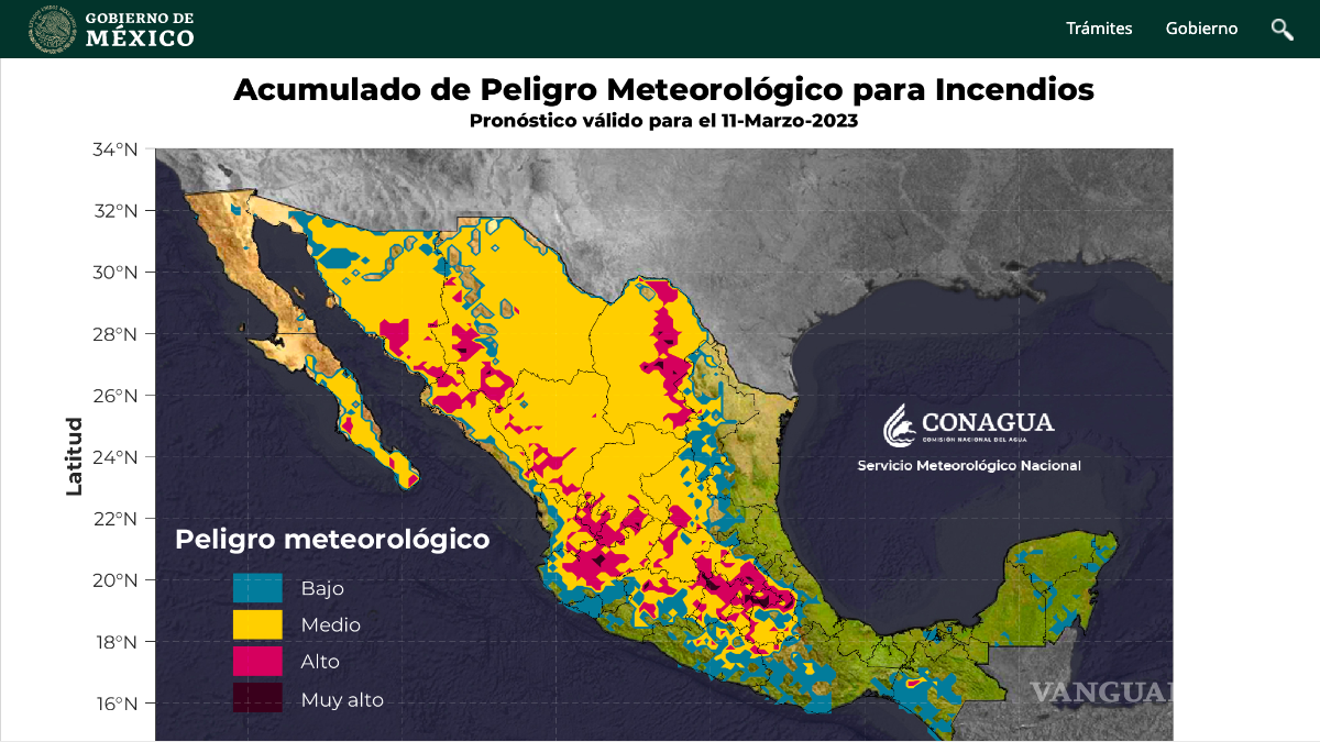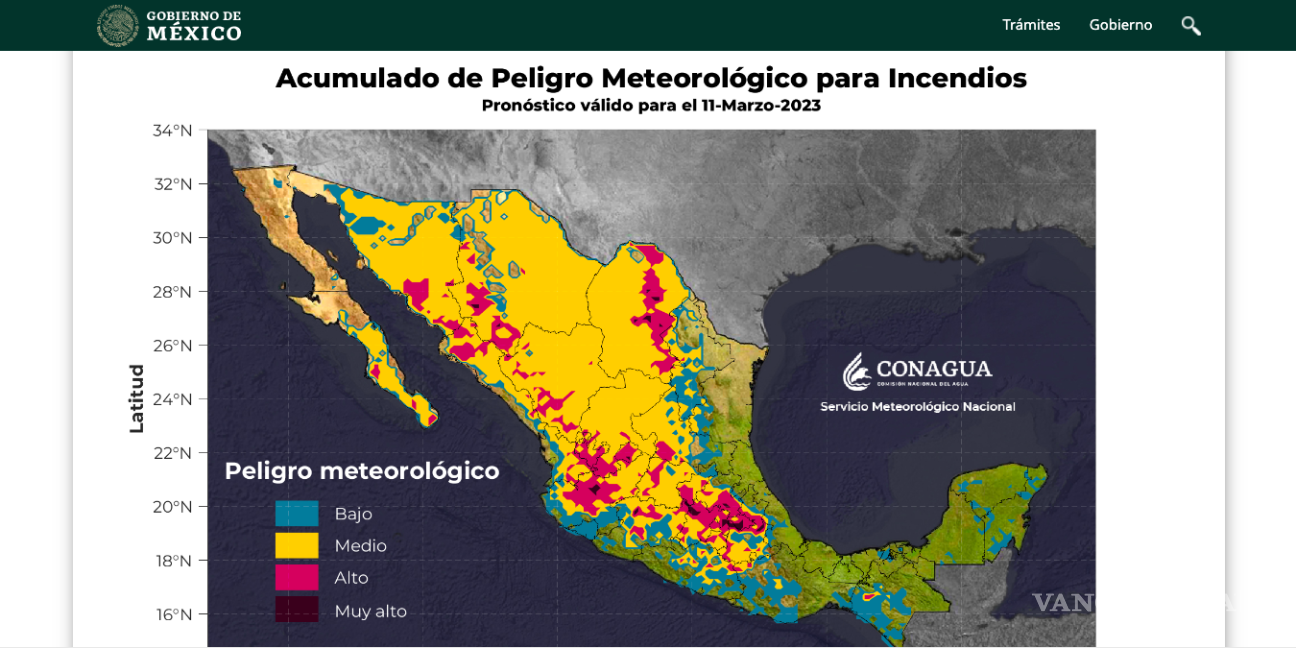 No obstante, de acuerdo con el Servicio Meteorológico Nacional de la Conagua, la mayor parte de Coahuila permanece con riesgo medio de incendio. Asimismo, las Regiones Sureste, Carbonífera y Frontera reportaron riesgo alto. Por su parte, el municipio de San Buenaventura fue calificado como riesgo muy alto.