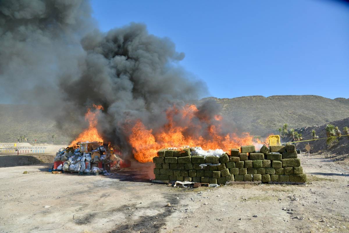 Se destruyeron 3,587 kg de marihuana, 86 kg de metanfetamina y 2.2 kg de cocaína