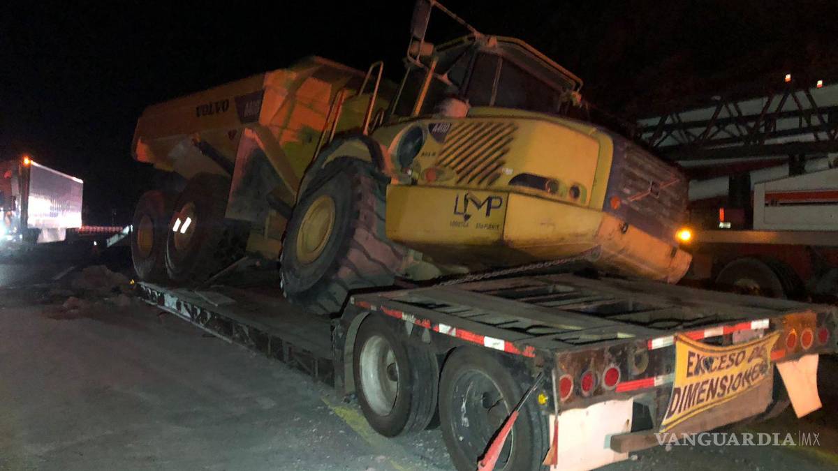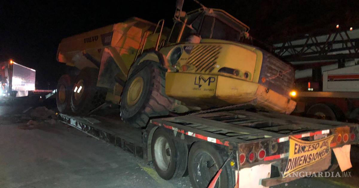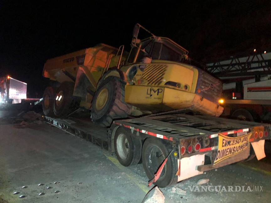 Tras lo anterior, el conductor de un camión tipo bulldozer que circulaba con dirección a Matehuala no logró esquivar los pedazos de concreto, por lo que se impactó contra el tráiler.