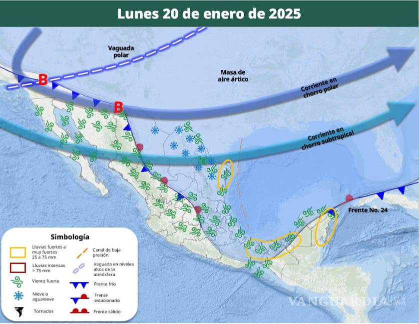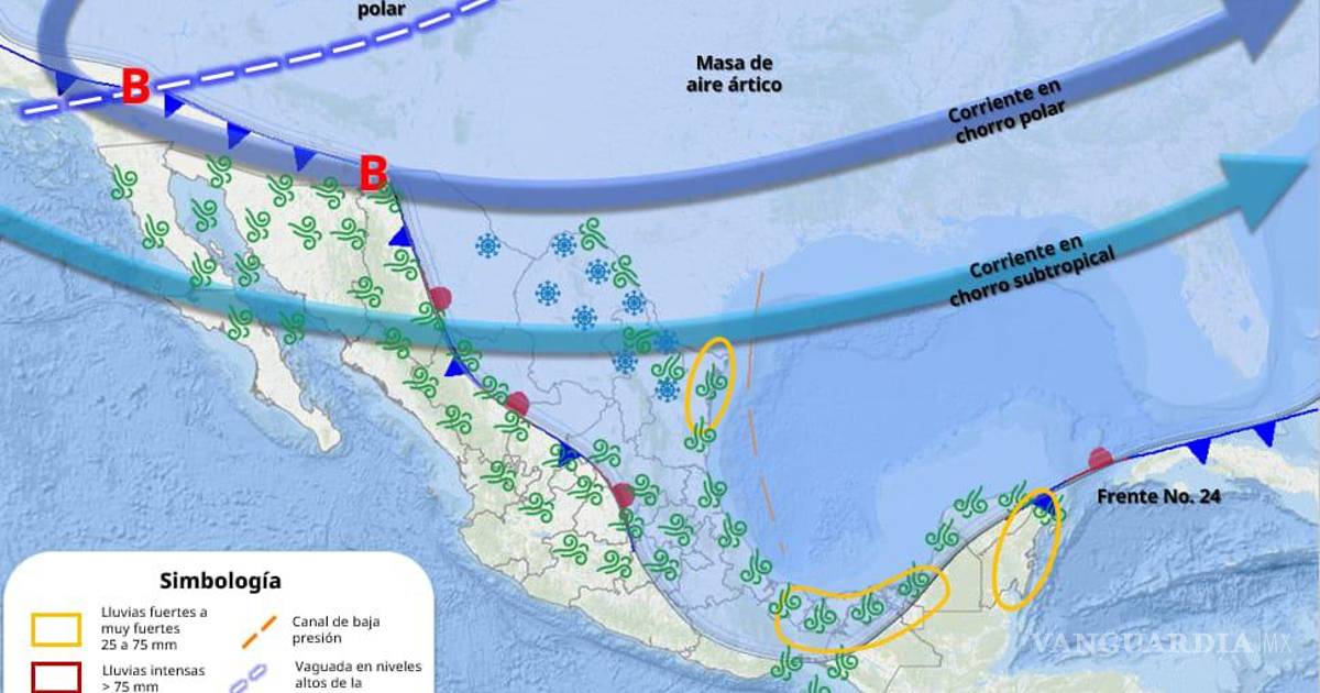 La Subsecretaría de Protección Civil de Coahuila alertó que la masa de aire ártico asociada al frente frío número 24 se mantendrá en territorio coahuilense durante lunes y martes, lo que podría ocasionar la caída de nieve o aguanieve en zonas montañosas.