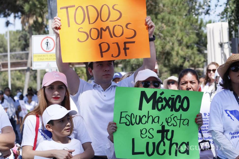 En la manifestación, portaban pancartas con los mensajes “México, despierta, somos tu defensa”, “¡México! Escucha, esta es tu lucha”, “Independencia jurídica, garantía nacional”, “División de poderes, igual a democracia”, “La justicia no se negocia, se respeta”, entre otros.