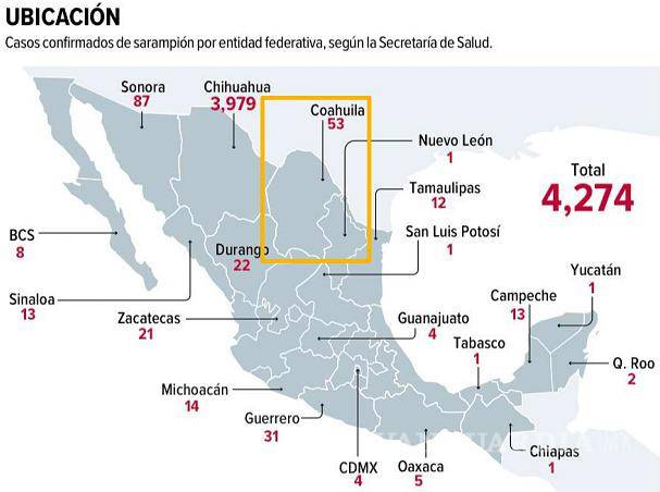 Ya suman en Coahuila 53 casos confirmados de la enfermedad, manteniéndose como el tercer Estado más afectado del País
