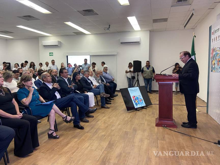 El funcionario presentó su libro frente a los alcaldes de Monclova y Frontera, Mario Dávila Delgado y Roberto Piña Amaya, respectivamente, así como a los miembros del sector salud de la Región Centro de Coahuila en las instalaciones de la Canacintra en Monclova.