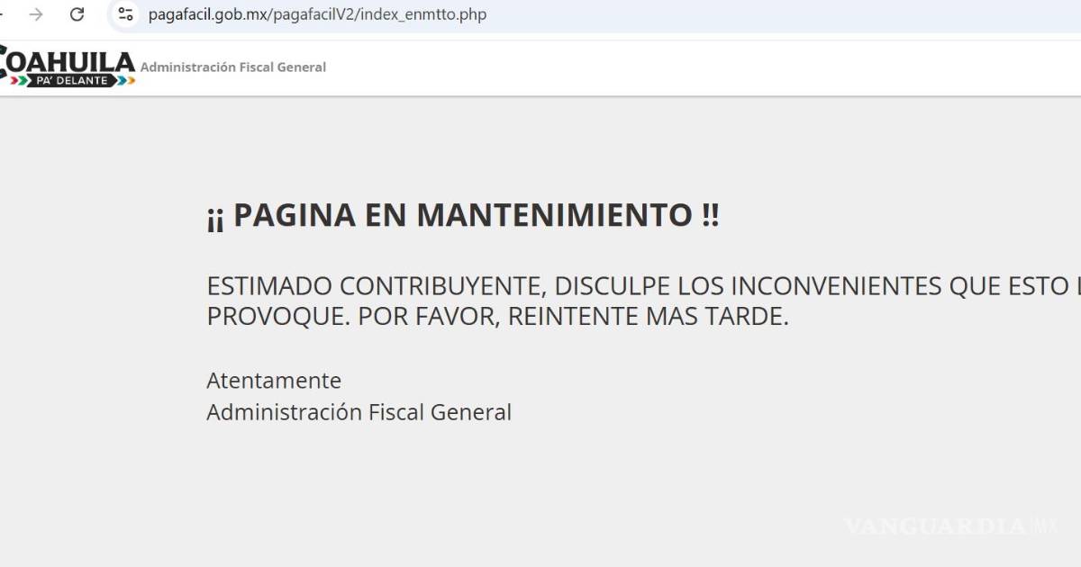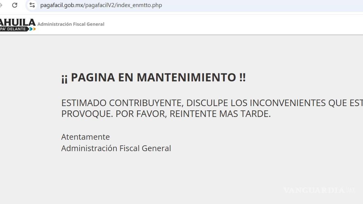 El sitio web Pagafácil se mantiene fuera de servicio presuntamente por labores de mantenimiento, lo que impide a usuarios realizar pagos y trámites por internet relativos al Gobierno de Coahuila, como es el control vehicular, licencias de conducir, entre otros.