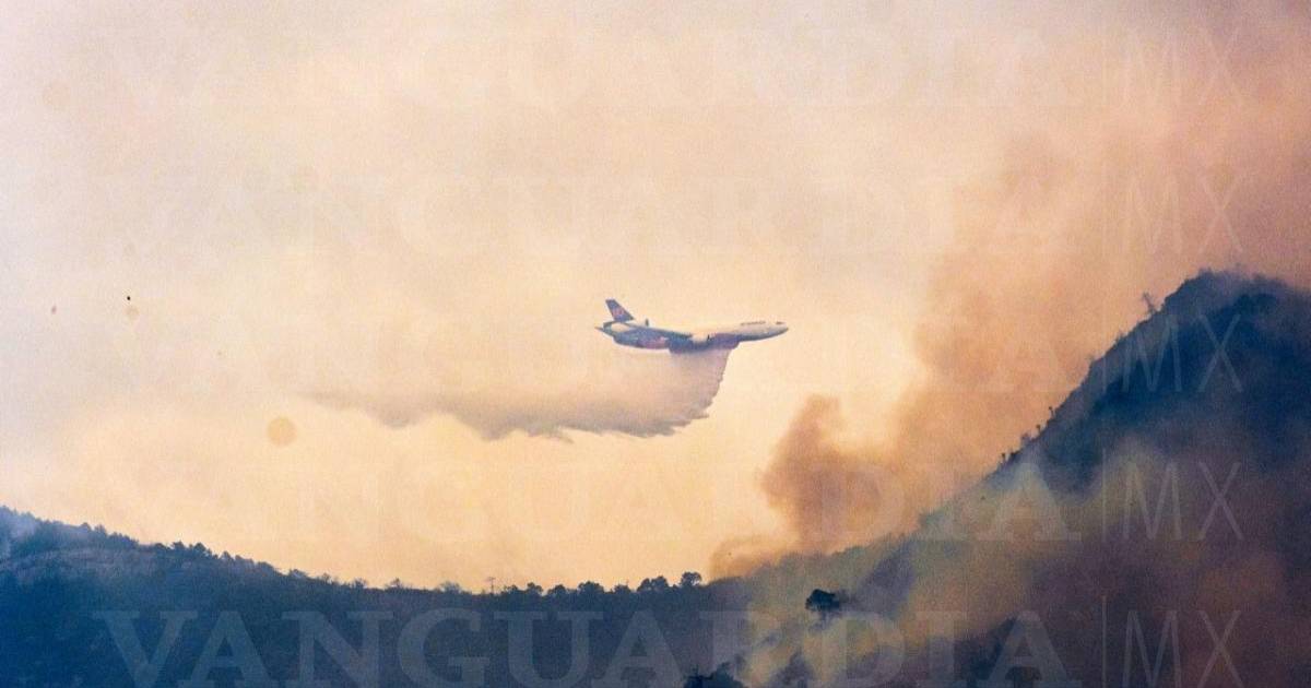 Este jueves alrededor de las 15:00 horas, arribó a Saltillo la aeronave DC-10 Air Tanker, para combatir el incendio registrado en el Cañón de San Lorenzo, en el paraje de Santa Rosa descargando 50 mil litros de agua sobre el fuego vivo.