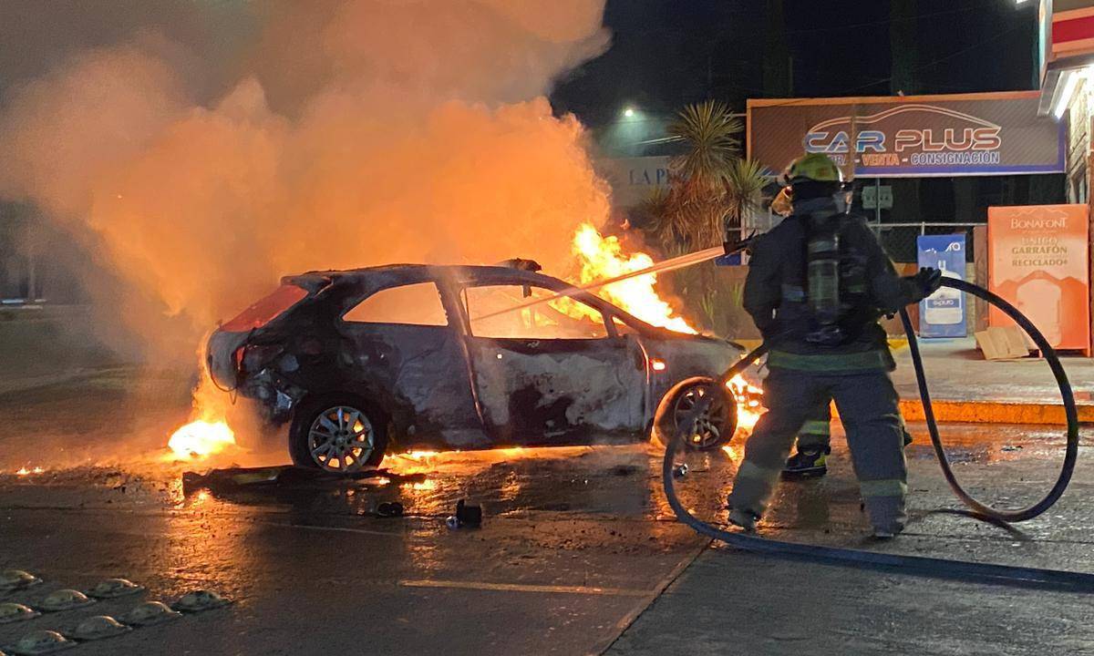La emoción de comprar un carro le duró poco a una persona, pues el vehículo seminuevo terminó carbonizado afuera de una tienda de conveniencia en el Fraccionamiento Los Pinos. La columna de humo se pudo ver desde diferentes puntos de la ciudad.