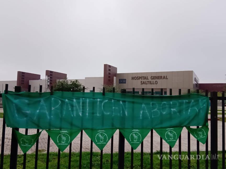 Colocan manta para exigir aborto seguro, gratuito y legal en Hospital General de Saltillo