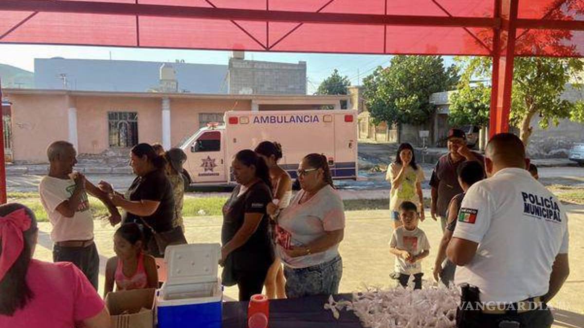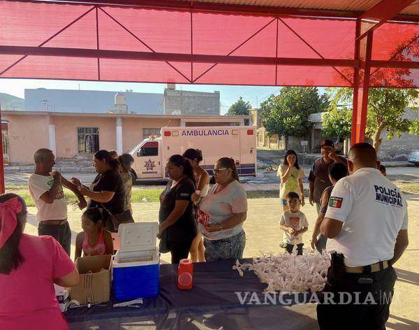TORREÓN, COAH.- Oficiales de la Policía de Torreón brindaron diferentes apoyos a las familias de la colonia Santiago Ramírez afectada por las recientes lluvias e inundaciones