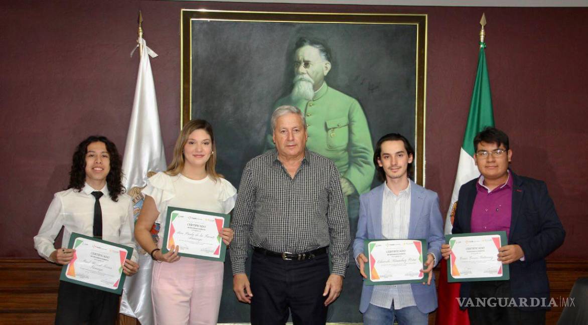 Fueron cuatro estudiantes saltillenses los que recibió el Alcalde en la Presidencia Municipal, debido a que obtuvieron la beca “Idioma Inglés”.