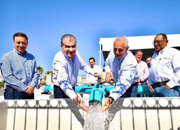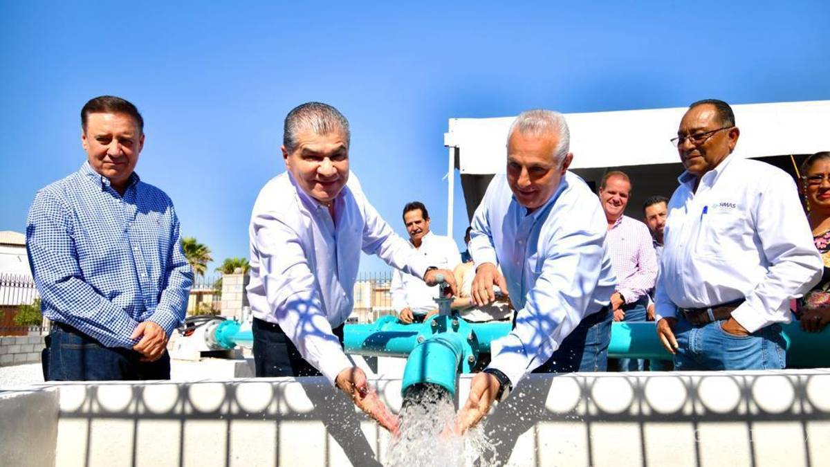 TORREÓN, COAH.- Este lunes, el gobernador Miguel Riquelme puso en marcha un nuevo pozo de agua potable en el suroriente de la ciudad, que fortalece la red de Simas Torreón y abastecerá a familias de las colonias La Merced II, Residencial La Hacienda, Torreón Residencial, Carmen Romano, Ampliación La Rosita y División del Norte, entre otras.