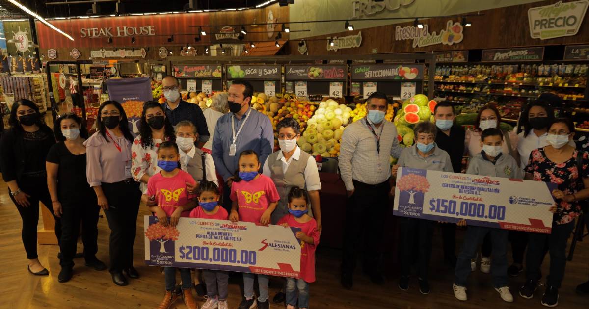 Los clientes de la cadena Alsuper donaron un total de 350 mil pesos en beneficio de dos asociaciones civiles de Saltillo: Centro de Neurorehabilitación Betesda A.C. y Aldea Infantil Pepita de Valle Arizpe A.C. a través del programa de redondeo “Con tu Cambio Florecen los Sueños”.
