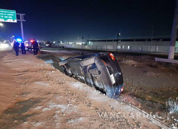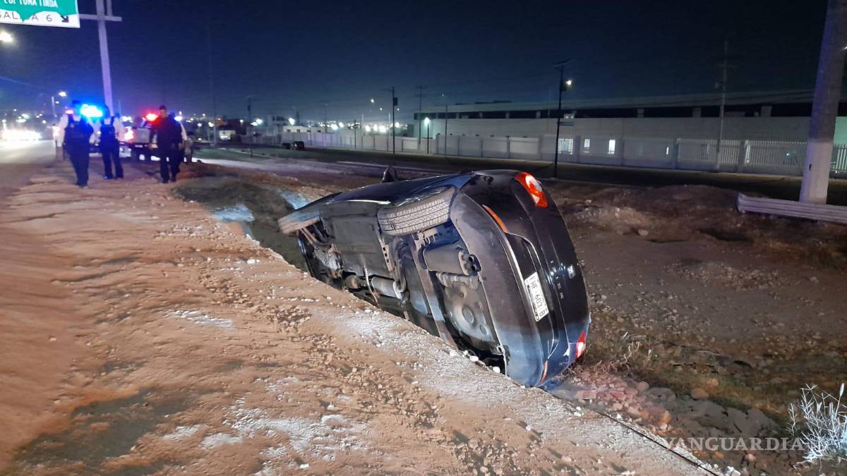 Un conductor a bordo de un Seat Ibiza terminó en una zanja en la colonia Misión Cerritos, al oriente de Saltillo, después de intentar esquivar un pozo en un camino de terracería la madrugada de este sábado.