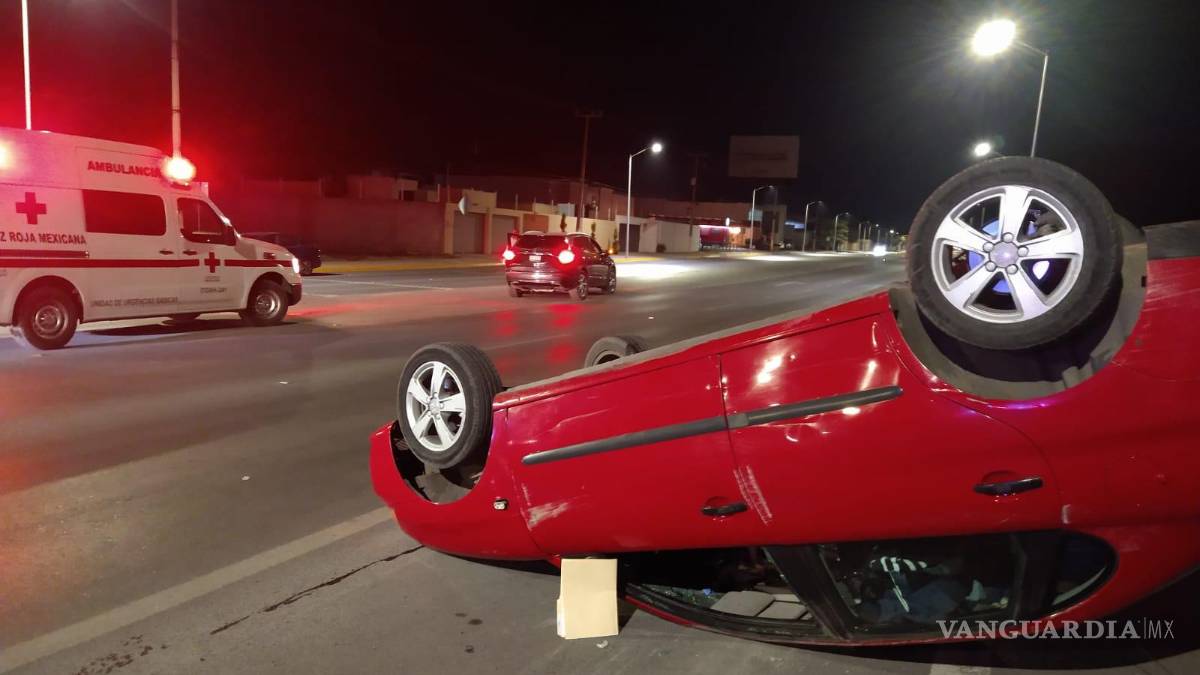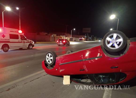 Un automovilista que conducía con aparente exceso de velocidad perdió el control de su unidad e impactó a un compacto, mismo que lo catapultó sobre el asfalto y terminó volcado sobre el bulevar Los Valdez, en Saltillo.