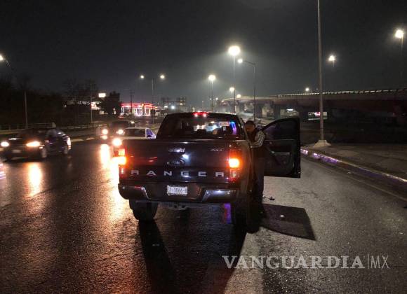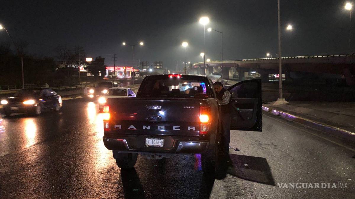 Conductor derrapa debido al pavimento mojado y termina estampado en barra de contención, al oriente de Saltillo