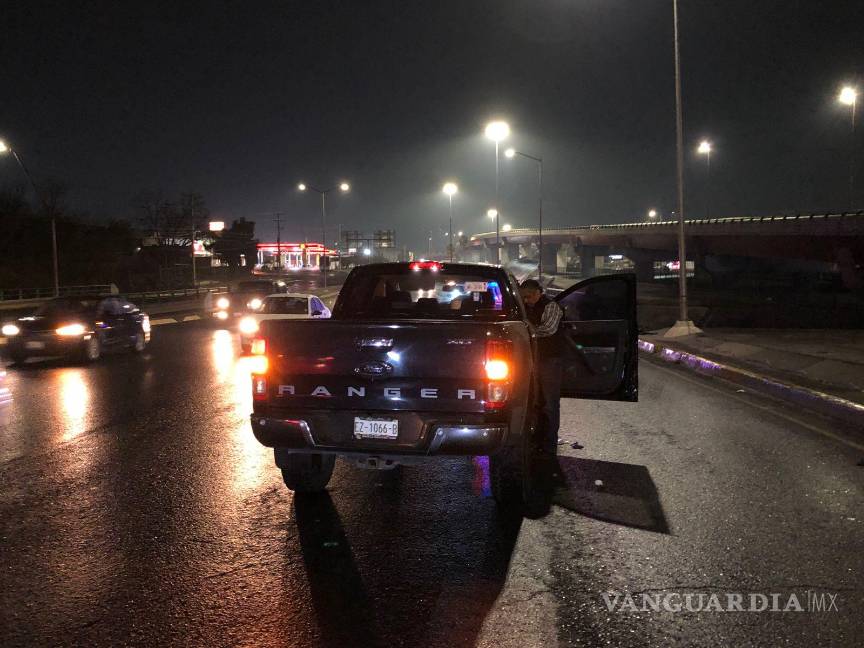 El conductor de una camioneta de la marca Ford resultó con la parte delantera de su unidad completamente destruida, pues al perder el control debido al pavimento mojado colisionó contra la barra de contención de “El Sarape”, al oriente de Saltillo.