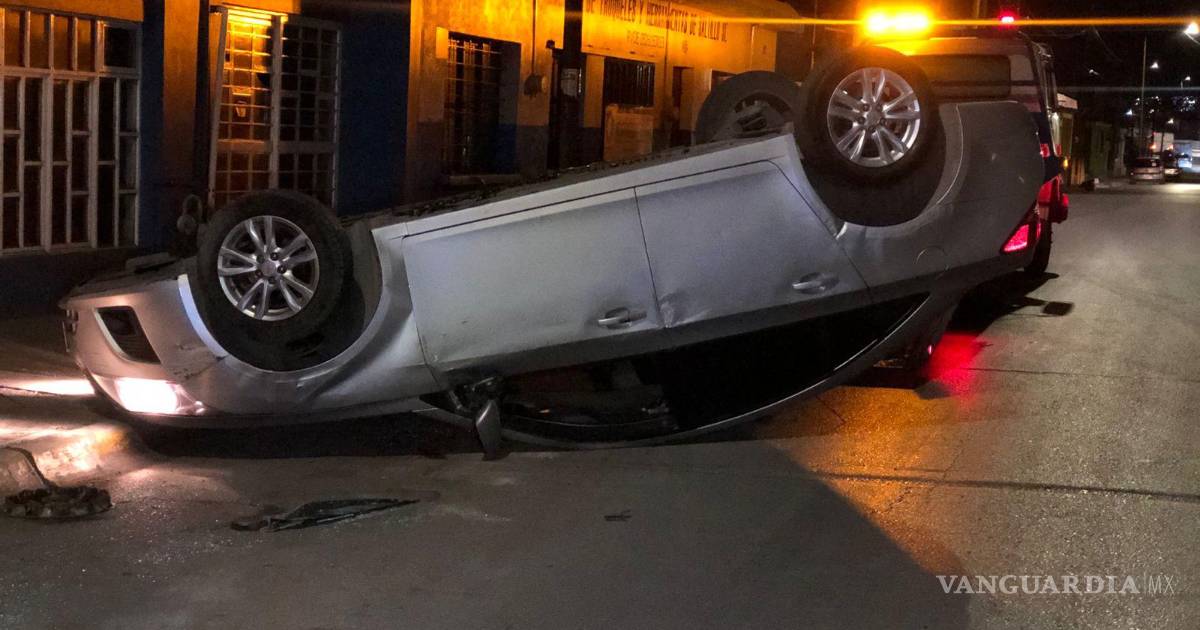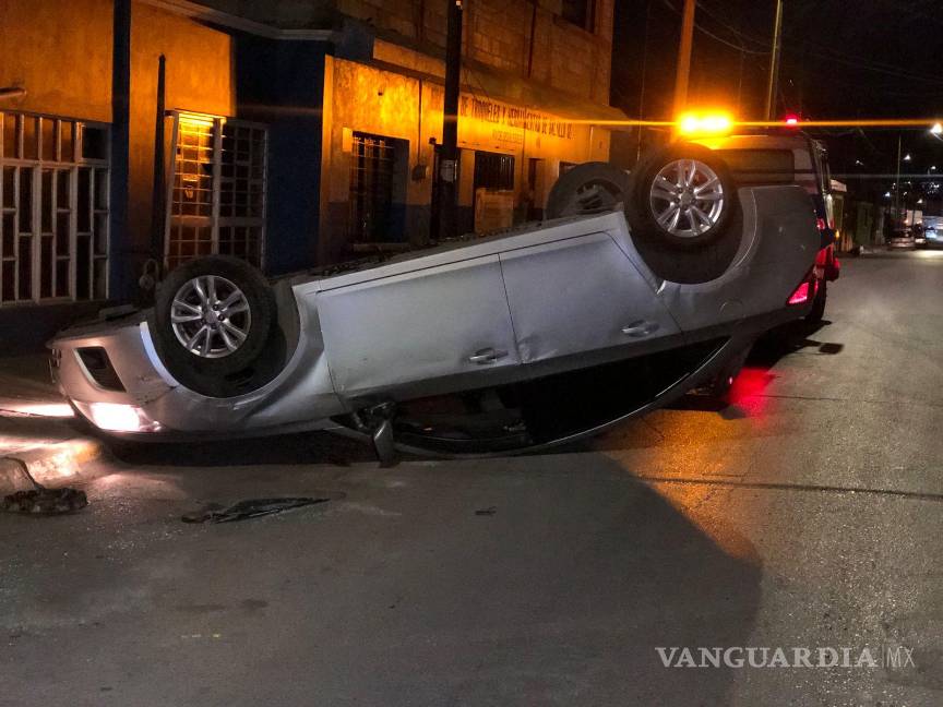 El conductor de un vehículo de la marca Chevrolet terminó volcando su unidad, pues al transitar con sueño presuntamente dormitó, lo que provocó que se impactara contra un automóvil estacionado al poniente de Saltillo.