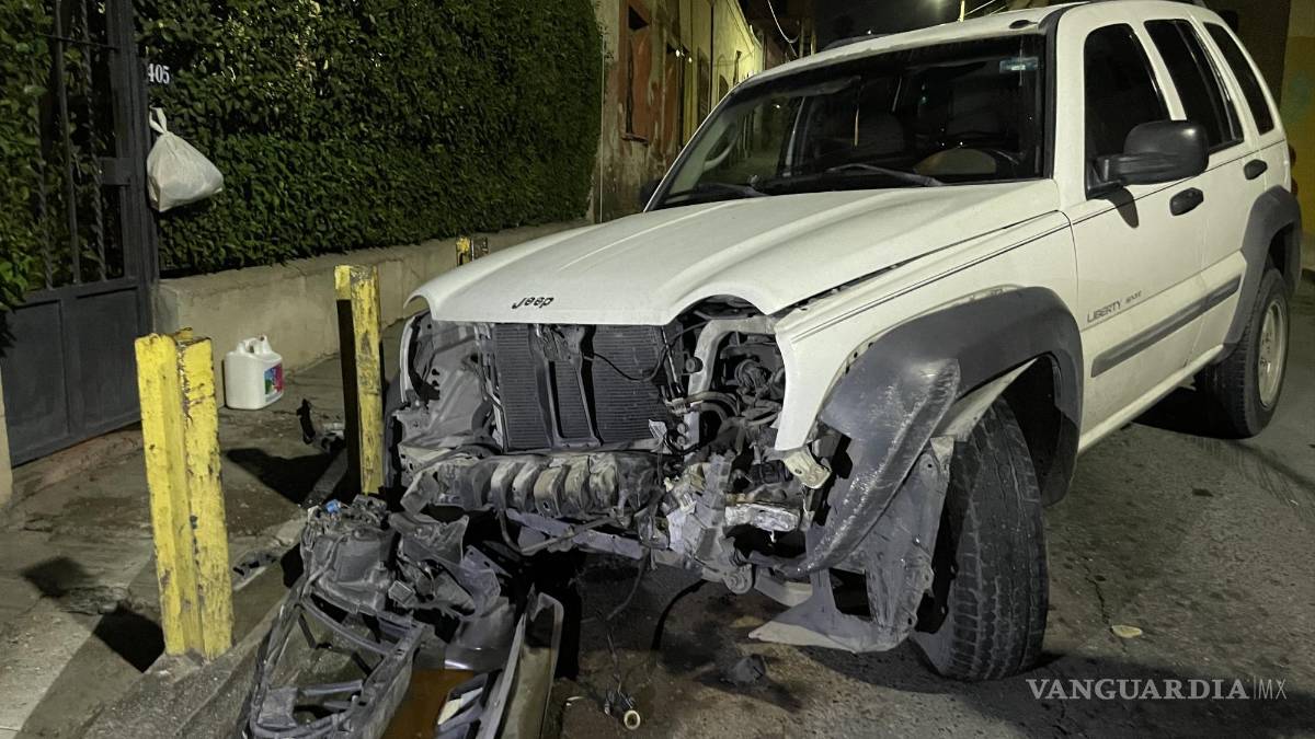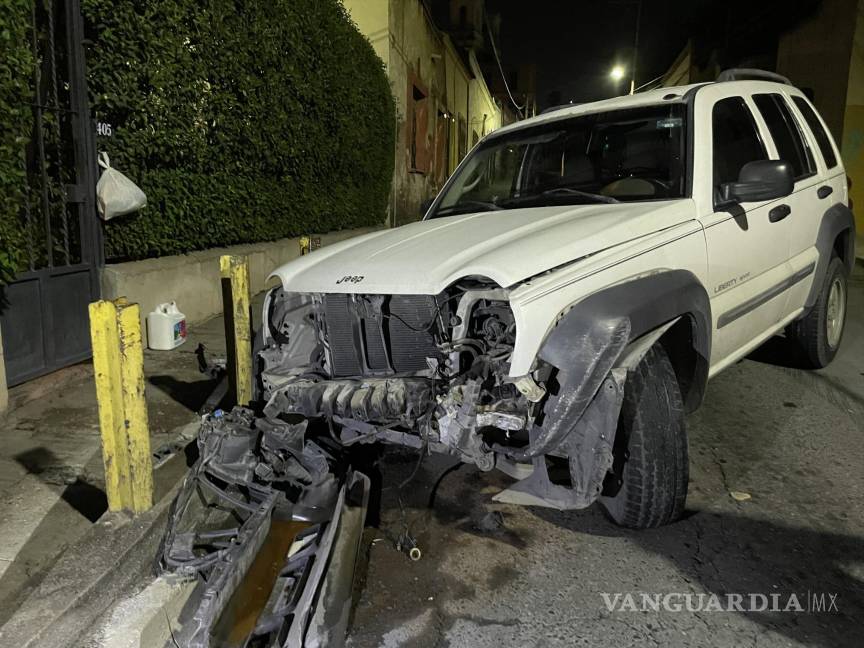 Por circular en estado de ebriedad, un joven terminó destrozando su camioneta después de perder el control y provocar un aparatoso accidente al chocar contra unos postes metálicos que protegen una vivienda en la Zona Centro de Saltillo, donde impactó.