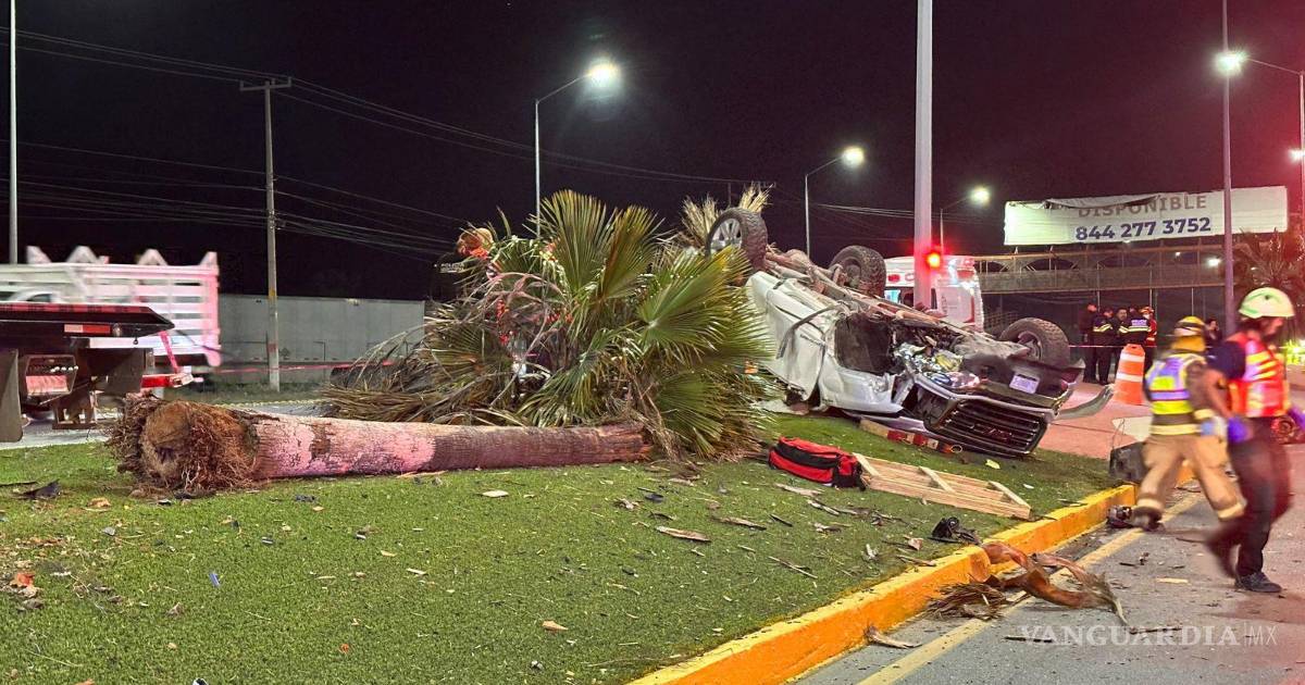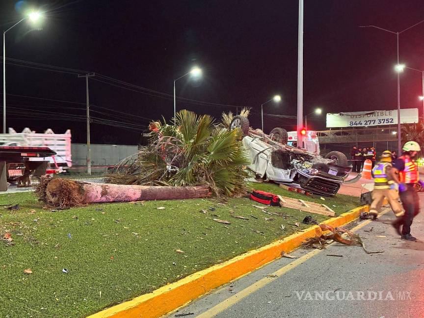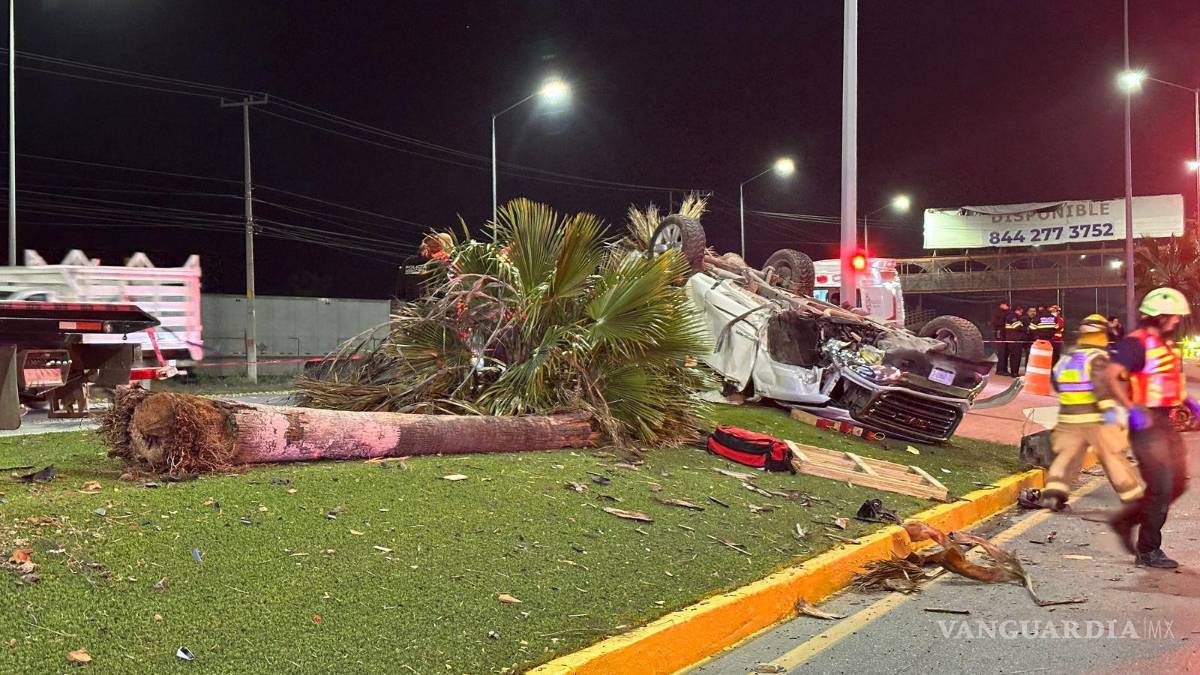 Un hombre perdió la vida prensado al interior de su camioneta, luego de que invadiera el carril, lo que provocó que chocara contra un transporte de personal para posteriormente salir proyectado contra una palmera en el camellón central en Ramos Arizpe.