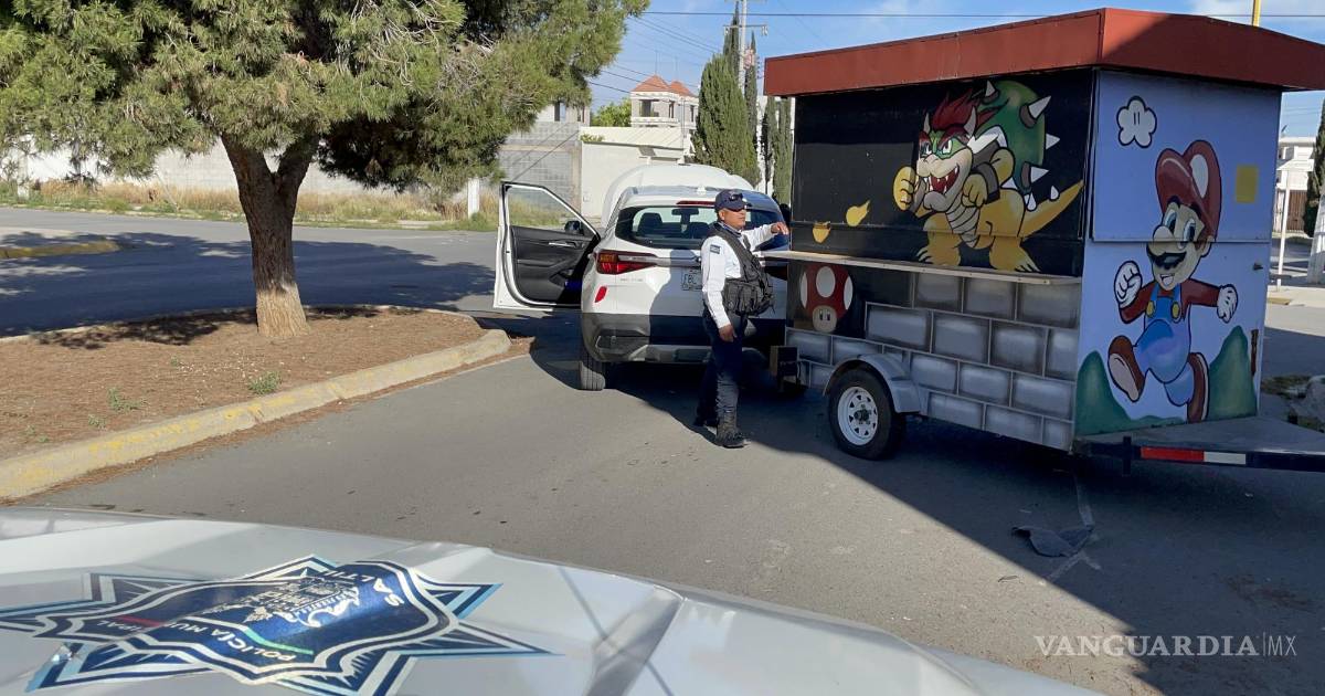 “Algo me encandiló y cuando abrí los ojos tenía el puesto enfrente”, argumentó el conductor de una camioneta que se llevó entre las llantas de su auto un puesto de comida, al sur de Saltillo.