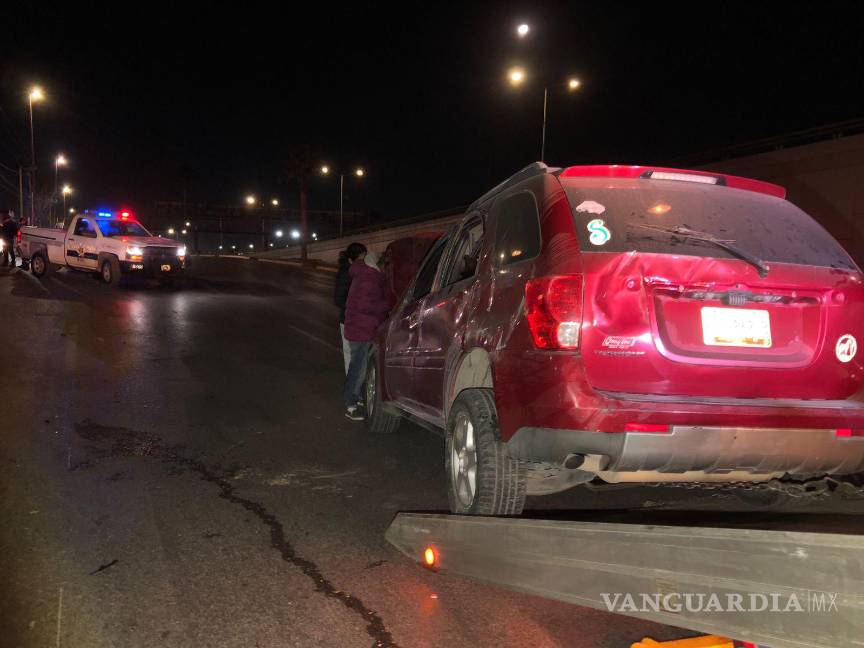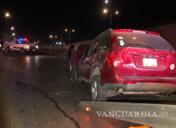 El conductor de una camioneta de la marca Pontiac terminó volcado después de que se impactara contra una luminaria en la lateral del bulevar Fundadores, al oriente de Saltillo.