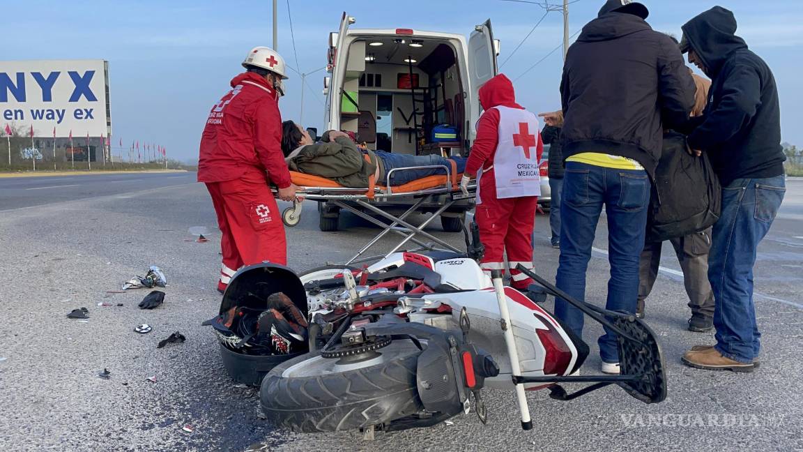 La conductora de una camioneta ocasionó que un motociclista fuera llevado al hospital, luego de que se le atravesara en su camino cuando salió del la calle Vista Alta para incorporarse al bulevar Luis Donaldo Colosio, en Saltillo.