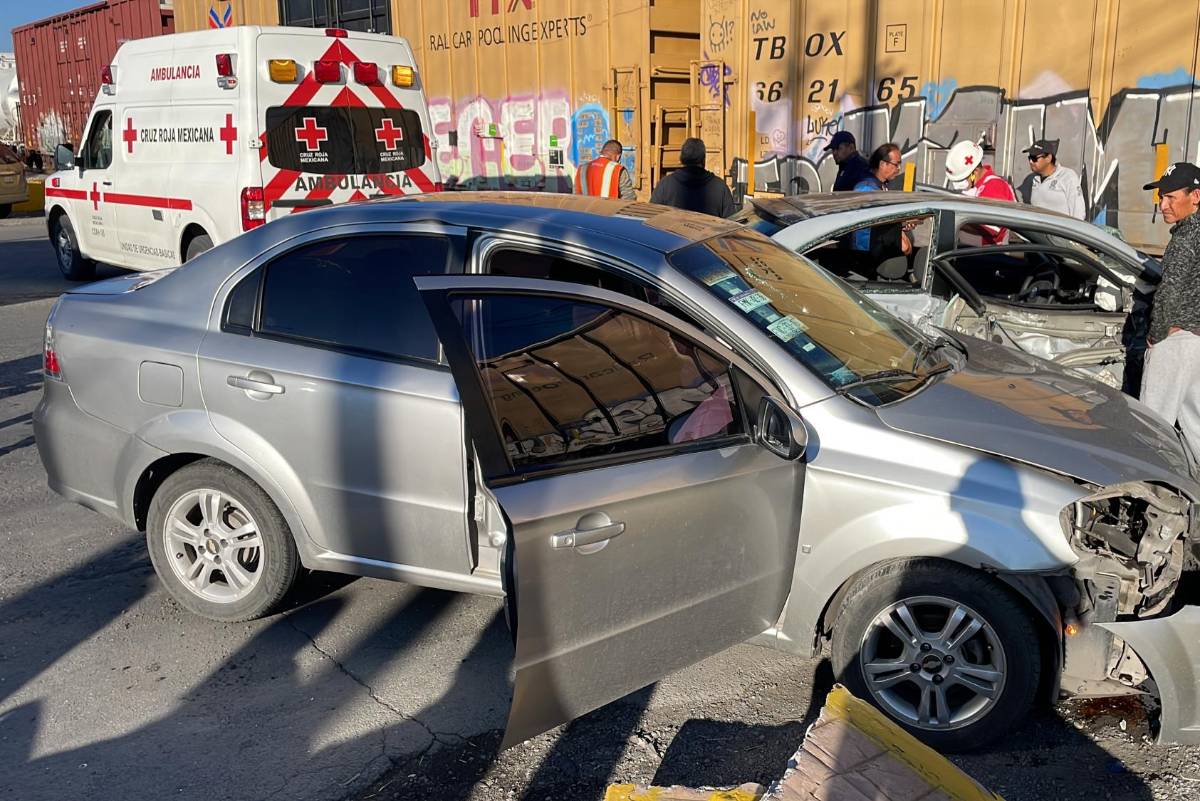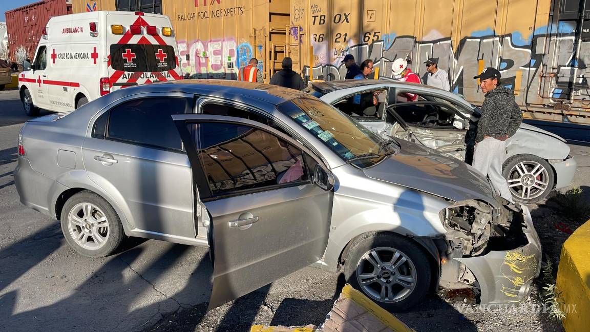Conductora intenta ganarle el paso al tren y es proyectada contra otro auto, al norte de Saltillo