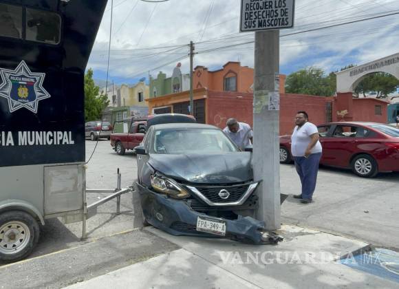 Conductora se impacta con otra y la proyecta contra un poste, en Saltillo