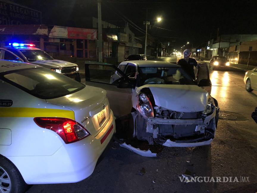 Un aparatoso percance ocurrió en la madrugada de este sábado en el cruce de la avenida Presidente Cárdenas y la calle Miguel Hidalgo, en el Centro de Saltillo. Los involucrados alegaron tener luz verde.